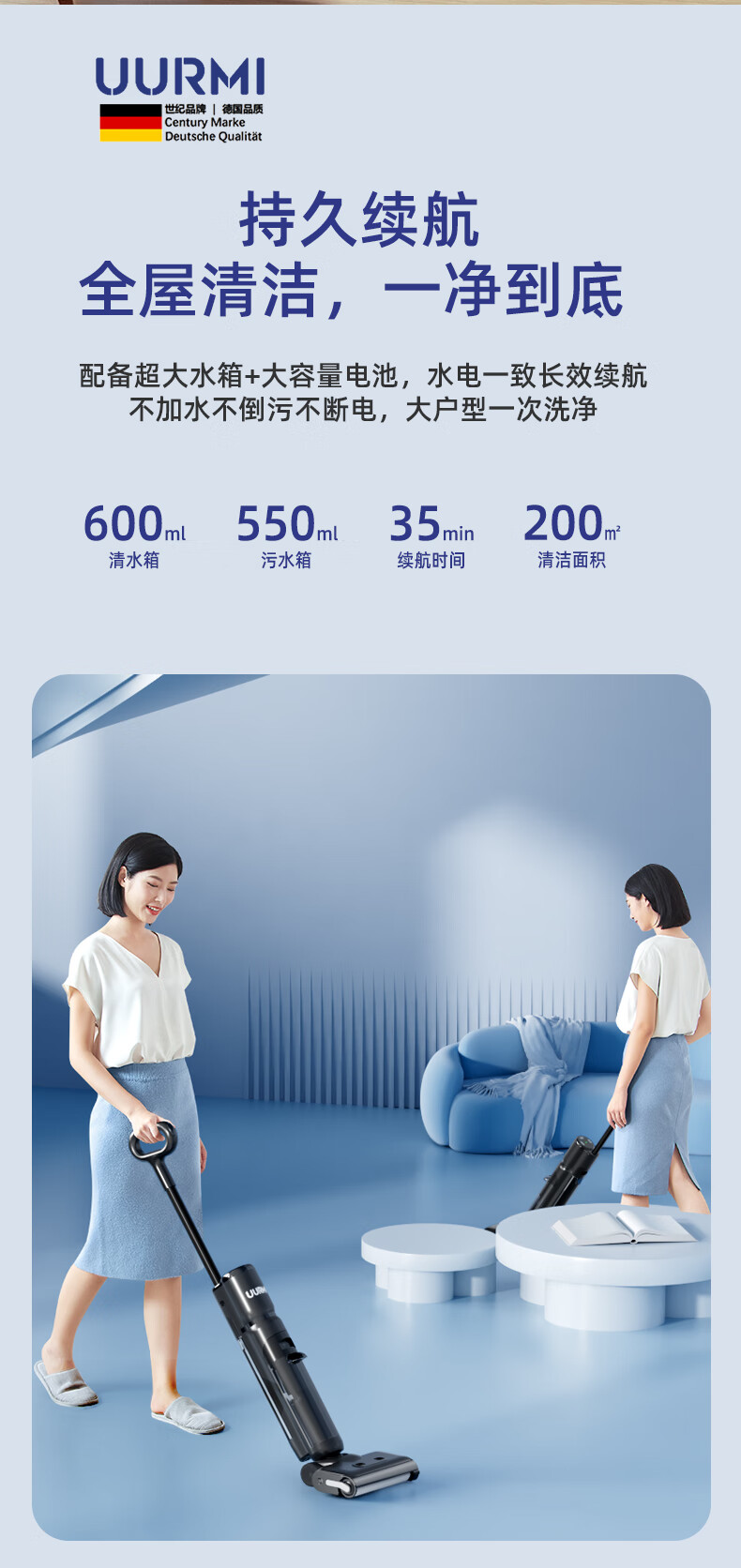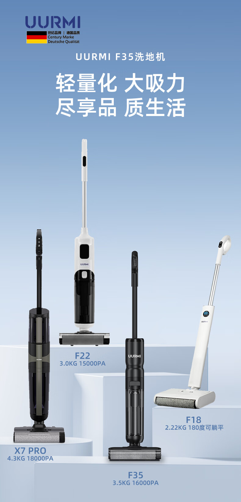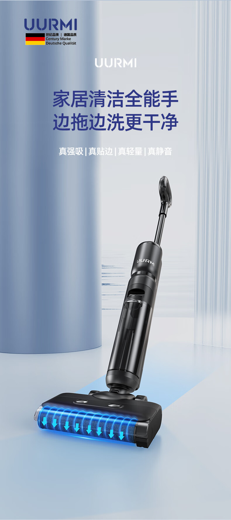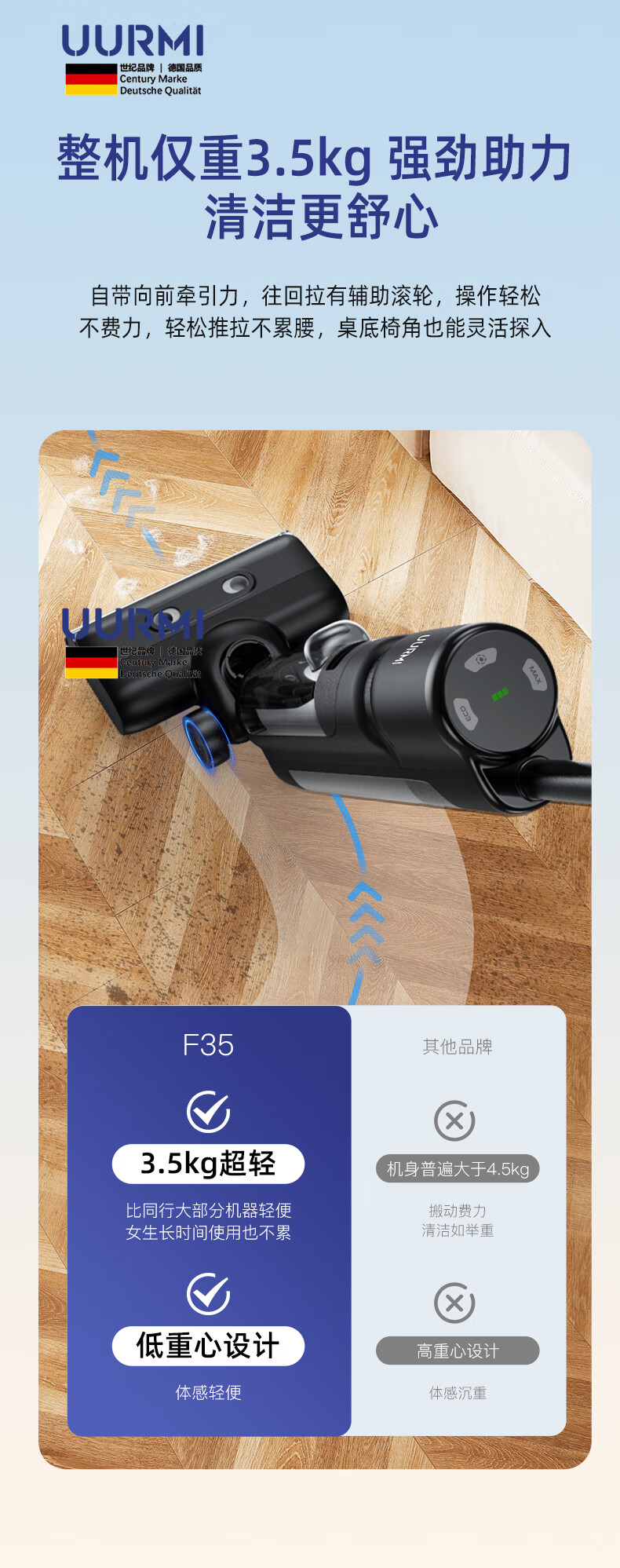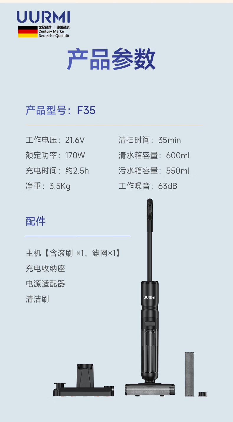UURMI德国品牌新品F35洗地机大吸力双贴边低 噪音新品上市家庭必备3.5KG 双侧贴边 F35