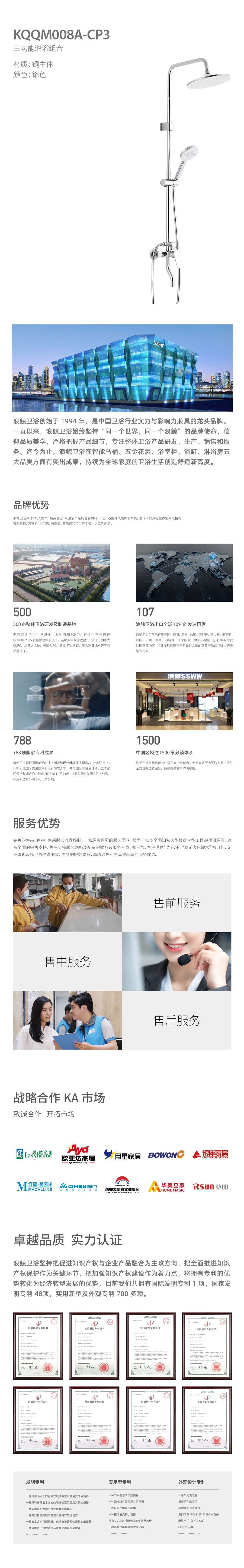 浪舰三功能淋浴花洒KQQM008A-CP3铬色