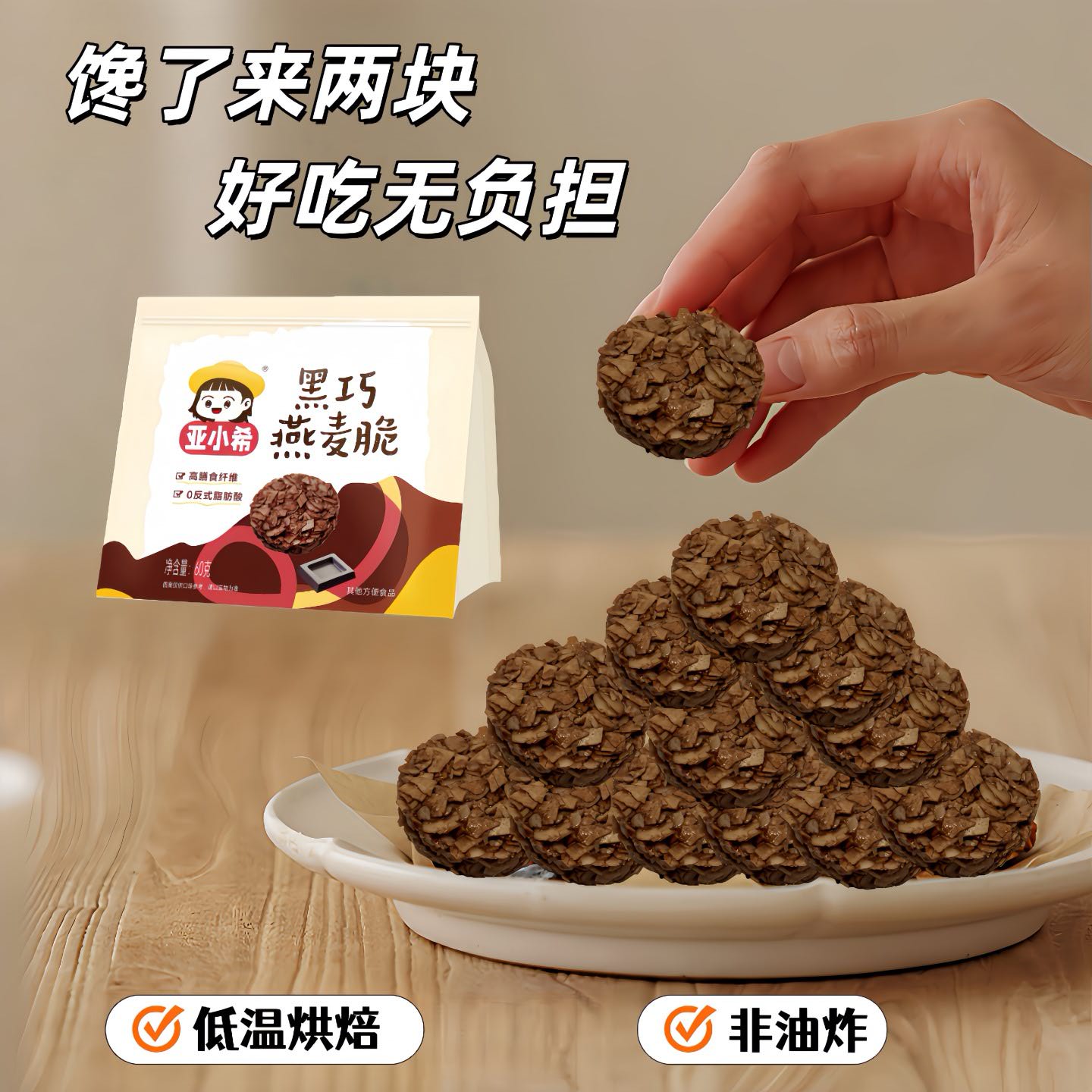 【新品上市】亚小希黑巧燕麦脆即食饱腹代餐零食营养早餐非油炸