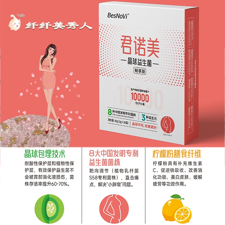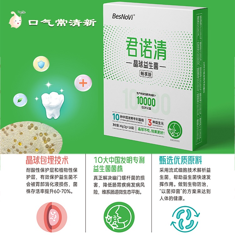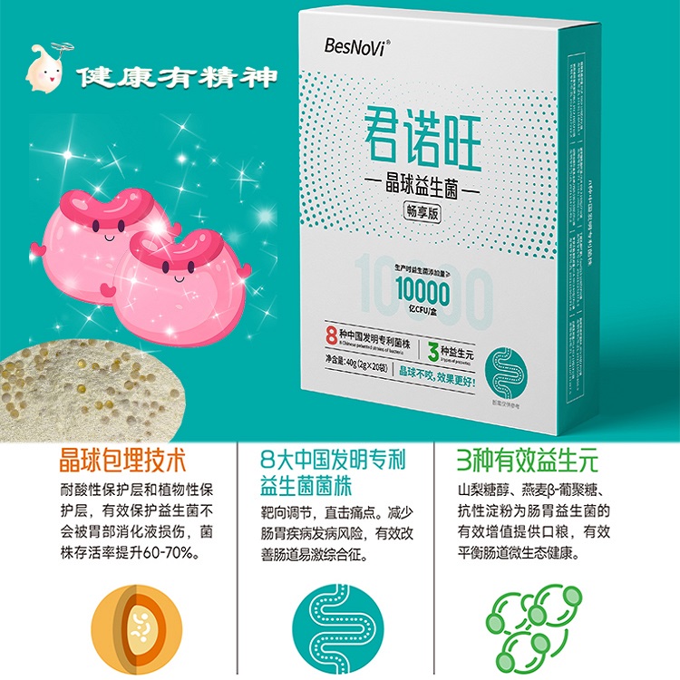 爆珠晶球益生菌,有效保护益生菌能够顺利穿过胃部,避免胃酸和胆汁的损坏。尽可能最大限度的保证益生菌的活性,顺利到达肠道进行定制。专门为中国人的肠道定制。适合华夏子孙的中国发明专利菌株。